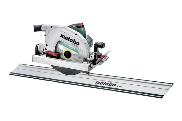 Schnelle, exakte Kappschnitte durch einfaches Koppeln mit einer Metabo Kappschiene KFS (Zubehör)