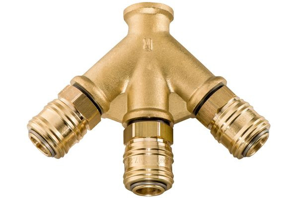Druckluftverteiler mit 3 Euro-Schnellkupplungen und Anschlussgewinde 3/8"i
