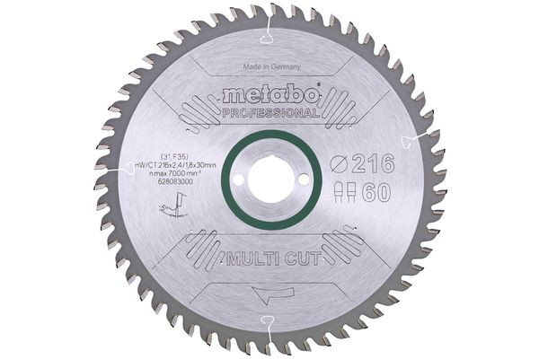 | Kurzbeschreibung | Sägeblatt "multi cut - professional", 216x2,4/1,8x30, Zähnezahl 60, Z60 FZ/TZ, 5°neg. (628083000) |