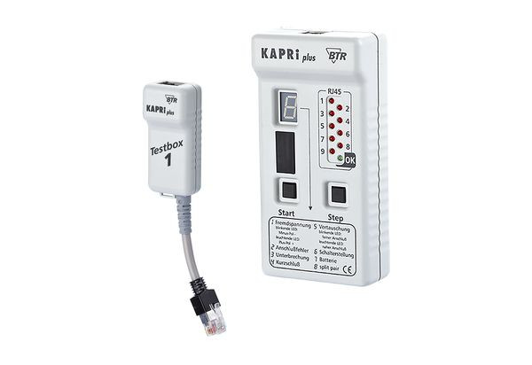 Mit dem Kabel- und Anschlussprüfgerät KAPRi plus werden die häufigsten Installationsfehler Kurzschluss, Aderunterbrechung, Adervertauschung und Leitungsvertauschung einfach, schnell und zuverlässig erkannt. Zusätzlich zu seinen Grundfunktionen der Fehlererkennung hat der KAPRi plus noch weitere nützliche Leistungsmerkmale wie Leitungsidentifikation durch Erkennung von bis zu neun Testboxnummern, Anzeige von Fremdspannung mit deren Polarität, Einstellbarkeit der Anschlussbelegung, automatische Abschaltung und vieles mehr.