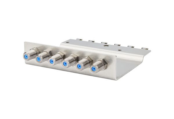 6fach KOAX Baugruppe mit 6 F/F Buchsen , 1HE Baugruppe zum Einbau in 1HE Modulträger, Tragschienenadapter und 6fach AP-Gehäuse