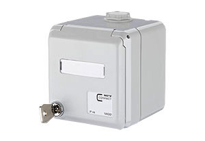 abschließbare Aufputz (grau) IP44 Dose, mit zwei Schlüsseln mit gleichschließendem Schloss (gleiche Schlösser und Schlüssel)