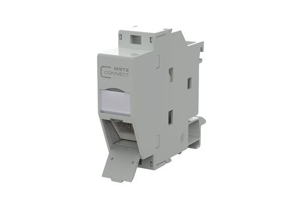 Anschlusseinheit zur Montage auf Tragschiene TH35 nach DIN EN 60715 in Elektroverteilern für Haus- und Industrieinstallation, neue METZ CONNECT FF Technologie, ohne Kunststofffolie verpackt (Easy Installation technology ? foil free) , bestückt mit UTP modul Cat.5e, Kabelzugang 45° von oben, Steckrichtung 45° nach unten geneigt, Cat.5e Komponentenprüfung nach ISO/IEC 11801, DIN EN 50173-1, ANSI/TIA-568.2-D und IEC 60603-7-41, Einhaltung der Klasse D nach ISO/IEC 11801, DIN EN 50173-1, für 1GBit Ethernet (IEEE 802.3ab), Remote Powering (PoE, PoE plus, UPoE und 4PPoE) und HDBaseT, SAT-IP, AVoverIP geeignet, montagefreundlicher Anschluss der 2- bis 4-paarigen Datenleitung AWG 26/1 - 22/1 und Litzenleiter mit 7-drähtiger Cu-Litze AWG 26/7 - 22/7 an BTR 8fach IDC-Schneidklemmen, Kennzeichnung der Adernbelegung T568A und T568B, leichtes und schnelles Einlegen der Adernpaare in das UTP modul Ladestück, die Baubreite von 1TE ermöglicht den Einbau von bis zu 12 REGplus in Standard-Elektroverteiler, Das Modul ist durch eine Abdeckung vor direkter Berührung geschützt. Bei Montage in schutzisolierten Verteilern bleibt die Schutzklasse II somit bestehen. integrierte Staubschutzklappe (auch farbig erhältlich)