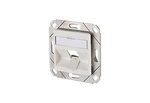 Kanal-Anschlusseinheit für Einzelmodule in Keystonebauform, Steckrichtung des Moduls 45° nach unten geneigt, Zugentlastung am Modul, mit Sichtfenster für beiliegende Beschriftungseinlage, Beschriftungsbogen 209 x 294 mm siehe Zubehör, integrierte Staubschutzklappen (auch farbig erhältlich), Oberfläche matt strukturiert, kompatibel zu Design-Zentralstücken von Schalterprogrammen, Varianten: 1 Port, 2 Port, 3 Port
