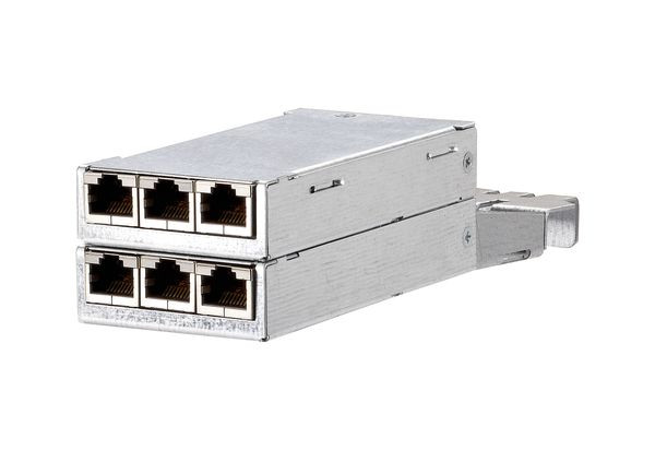 Baugruppe 6 Port RJ45 zur Montage von 6 einzelnen Installationskabeln, Cat.6, A Komponentenprüfung nach ISO/IEC 11801, ANSI/TIA-568.2-D und IEC 60603-7-51, GHMT zertifiziertEinhaltung der Klasse E, A bis 500 MHz nach ISO/IEC 11801, GHMT zertifiziertgetestet: Komponente bis 600 MHz, Link bis 800 MHz, für 10 GBit Ethernet (IEEE 802.3an), Remote Powering (PoE, PoE plus, UPoE und 4PPoE) und HDBaseT geeignet, Alien Next optimierte, geschirmte Einzelbuchsen, die Verriegelungshebel angeschlossener Patchkabel an den DCCS2 Baugruppen zeigen einheitlich nach oben und können jederzeit leicht bedient werden, Anschluss von sechs Datenleitungen AWG 26/1 - 22/1 (eindrähtig) an LSA-Schneidklemmen, Kennzeichnung der Adernbelegung T568A, robustes Baugruppengehäuse, veredelt, von Zugentlastung getrennter Schirmabgriff für das Installationskabel, Einbauform: DCCS2