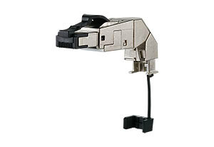 Feldkonfektionierbarer RJ45-Stecker Cat.6, A/Klasse EAvollgeschirmt und multiportfähig, Kabelzuführung variabel, frei wählbar (360°), einfachste Konfektion - ohne Spezialwerkzeug anschließbar, Adernanschluss Litzenleiter AWG 27/7 - 22/7, Aderdurchmesser 0,46 - 0,76 mm, Adernanschluss Vollader AWG 26/1 - 22/1, Aderdurchmesser 0,409 - 0,64 mm, Übertragungstechnische Eigenschaften Cat.6, A nach ISO/IEC 11801Einhaltung der Klasse E, A nach ISO/IEC 11801, DIN EN 50173-1Schutzart IP20, geeignet für Kabelmanteldurchmesser von 5,50 bis 9,50 mm, industrietaugliches Gehäuse aus Zinkdruckguss, Zugentlastung per Rastclip direkt am Ladestück, geschützter Verriegelungshaken, wiederanschließbar