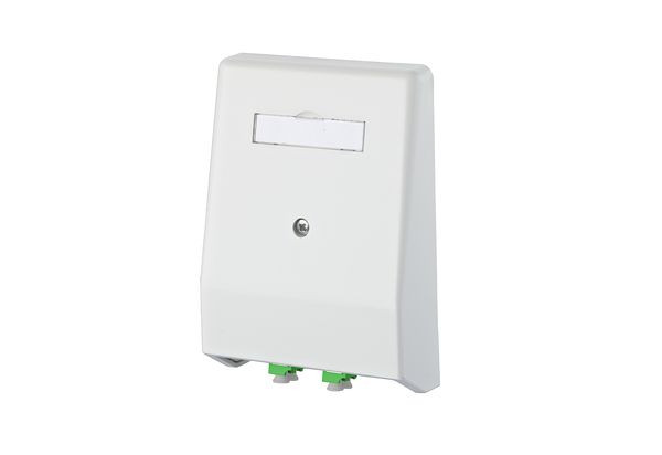 Glasfaser-Anschlusseinheit zur Unterputzmontage mit LWL Kupplungen, Bestückt mit 2 LC-D APC Kupplungen, Einhaltung eines Biegeradius von ca. 30 mm durch integriertes Kabelreservoir, Steckrichtung 10° nach unten geneigt, Zugentlastung mit Kabelbinder möglich, mit Sichtfenster für beiliegende Beschriftungseinlage, geeignet für vorkonfektionierte Kabel bzw. Stecker-Vor-Ort-Konfektionierung, Geeignet für Mini-Breakout Kabel, Farbe der Abdeckteile reinweiß RAL 9010, Varianten: 2 LC-D, 2 SC-D, 4 ST