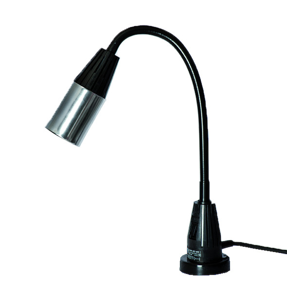 flexibler Lichthalterschlauch, Leuchtenfuß mit Schalter und Permanent-Haftmagent (650Nm), 2,5 m Zuleitung, Leuchtenkopf aus Polyamid/Aluminium, serienmäßig ohne Lampe