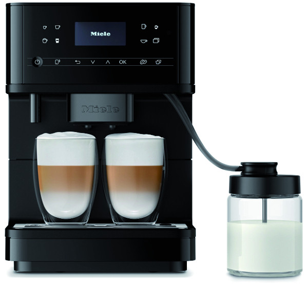 One-Touch for Two Zubereitung für 1 oder 2 Espresso, Kaffee, Cappuccino, Kaffee einfach, Kaffee lang, Ristretto, Latte Macchiato, Caffè Latte, Espresso Macchiato, Cappuccino Italiano, Flat white, Café au lait, Heiße Milch; zusätzlich Heißwasser einfach, Warmwasser einfach, Schwarzer Tee/Kräutertee/Früchtetee/Grüner Tee/Weißer Tee/Japan Tee einfach und Kaffeekannenfunktion; DirectSensor Display, individuelle Sprachauswahl, BrilliantLight, beheizte Tassenabstellfläche, AromaticSystem (aromaschonende Mahlung und intelligente Brühtechnik), DoubleShot, aromaschonendes Kegelmahlwerk, Mahlgrad einstellbar, programmierbare Mahlmenge, entnehmbare Brüheinheit, programmierbare Wassermenge, Wassertemperatur, Milchmenge, Milchschaummenge und Vorbrühen, TeaTimer, PerformanceMode, Expertenmodus, 8 individuelle Genießerprofile; automatische Spülfunktion, komfortable Reinigungsprogramme, manuelle Entkalkung, automatische Spülung der Milchleitung aus dem Wassertank, entnehmbare Milchleitung, stufenlos höhenverstellbarer Getränkeauslauf 8-14 cm, Stand-by-Zeit programmierbar, energiesparender Eco-Mode einschaltbar, entnehmbarer Bohnenbehälter 300 g, Edelstahl-Milchlanze, Milchbehälter aus Glas 0,7 l , Vernetzung mit Miele@home, inkl. 250 g Miele Black Edition Café Crema