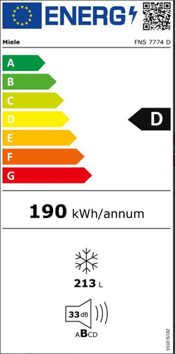 | Durchschnittlicher Energieverbrauch in kWh/Jahr | 190 kWh |