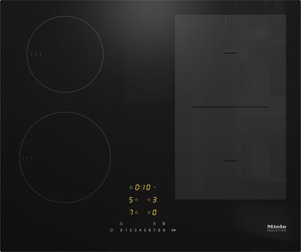 4 Induktionskochzonen inkl. 1 leistungsstarken PowerFlex-Kochbereich mit automatischer Topferkennung, TwinBooster, Ankochautomatik und Warmhaltefunktion, Restwärmeanzeige, Bedienung über Sensortasten ComfortSelect, individuelle Einstellmöglichkeiten für die Bedienung (z.B. Signaltöne), digitale Anzeige der Leistungsstufen, Kurzzeitwecker, Stop&Go-Funktion, Recall-Funktion, Sicherheitsausschaltung, Überhitzungsschutz, Verriegelungsfunktion, Inbetriebnahmesperre, rahmenlos, flächenbündiger oder aufliegender Einbau, Vernetzung mit Miele@home, Kommunikation mit der Haube - Automatikfunktion Con@ctivity,