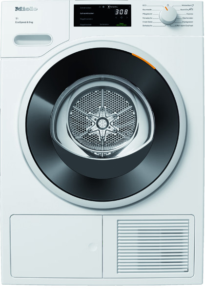 DirectSensor Display, Startvorwahl bis zu 24 Std., Restzeitanzeige, Anzeige "Behälter entleeren" und "Filter reinigen", PerfectDry-Trockensystem, EcoDry-Technologie, EcoSpeed, FragranceDos, AddLoad (Nachlegen nach Programmstart), Optionen: Knitterschutz, Schonen plus; Trockenprogramme: Baumwolle, ECO, Pflegeleicht, Feinwäsche, Oberhemden, Finish Wolle, Express, Imprägnieren, Bettwäsche, Lüften warm/DryFresh; LED-Trommelbeleuchtung, intelligente Trommelreversierung, PIN-Code Verriegelung, optische Schnittstelle, Miele@home, Wash2Dry (übernimmt das Programm der Waschmaschine), Türanschlag links, wechselbar, ProfiEco Motor