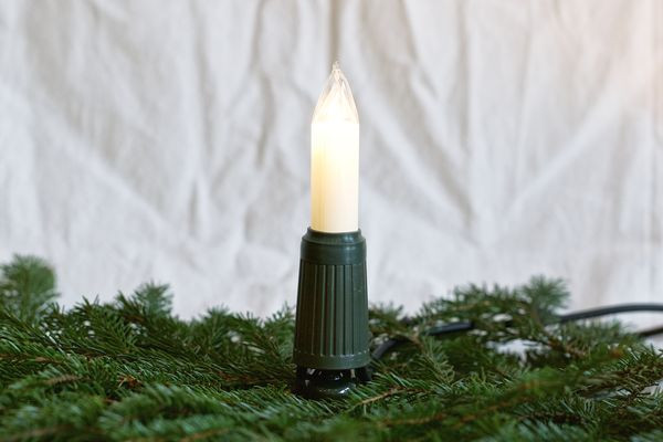 Lichterkette Aussenbereich, 30tlg. Schaftlampen E14, 8V/4W, klar, austauschbar, Schaft elfenbeinfarben, grün, Lichterabstand ca.0,9m, Zuleitung ca.1,5m, Stecker teilbar