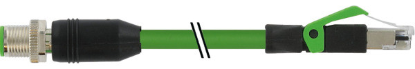 M12 St. 0° D-kod. / RJ45 St. 0° geschirmt PUR 1x4xAWG22 geschirmt gn UL/CSA+schleppk. 30m