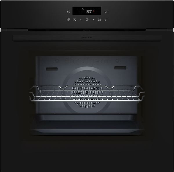 Backofentyp und Heizart Backofen mit 7 Beheizungsarten: Circo Therm®, Ober-/Unterhitze, Thermogrill, Großflächengrill, Pizzastufe, Circo Therm® sanft, Air Fry Temperaturregelung von 30 °C - 275 °C Garraumvolumen: 71 l Zubehörträger / Auszugssystem: Einschubebenen: 4 Auszug nachrüstbar Design LED Touch Control Steuerung Garraum: Email anthrazit Reinigung Pyrolytische Selbstreinigung Easy Clean (Reinigungshilfe): Leichte Verschmutzungen entfernen mit Wasserdampf und Spülmittel. Vollglas-Innentür Komfort Elektronik-Uhr Optische Aufheizkontrolle Temperaturvorschlag Ist-Temperaturanzeige Automatikprogramme 10 Automatikprogramme Profilgriff Automatikprogramme: Mit den Automatikprogrammen gelingt die Zubereitung immer. Einfach Gericht auswählen und Gewicht einstellen. Schnellaufheizung: Schnell zur Zieltemperatur ohne höheren Energieverbrauch Backofenbeleuchtung abschaltbar, Halogenleuchte Kühlgebläse Zubehör Air Fry- & Grillblech Kombirost 1 x Universalpfanne Umwelt und Sicherheit Sehr geringe Fenstertemperatur Niedrige Türtemperatur während der pyrolytischen Reinigung 4-fache Türverglasung Individuell einstellbare Kindersicherung Türverriegelung bei Pyrolysebetrieb Automatische Sicherheitsabschaltung Starttaste Technische Info Länge des Anschlusskabels: 120 cm Nennspannung: 220 - 240 V Gesamtanschlusswert Elektro: 3.6 kW Energieeffizienzklasse (gem. EU Nr. 65/2014): A+(auf einer Energieeffizienzklassen-Skala von A+++ bis D) Energieverbrauch pro Zyklus im konventionellen Modus: 0.94 kWh Energieverbrauch pro Zyklus im Umluft-Modus: 0.69 kWh Zahl der Garräume: 1 Wärmequelle: elektrisch Innenraumvolumen: 71 l Maße Gerätemaße (HxBxT): 595 x 594 x 548mm Nischenmaße (HxBxT): 595 mm x 560 mm x 550 mm „Maße und Einbauhinweise zu diesem Gerät gemäß technischer Zeichnung beachten“
