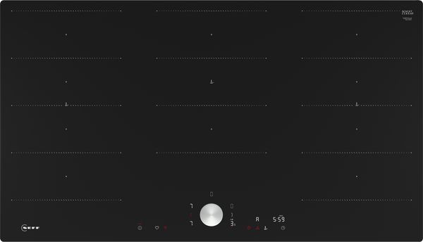 90 cm: Platz für 5 Töpfe oder Pfannen Flexibilität der Kochzonen 3 x Flexzone: Verwenden Sie Kochgeschirr beliebiger Form und Größe innerhalb der 40 cm langen Zone. Kochzone vorne links: 200 mm, 230 mm, 2.2 kW (maximale Leistung 3.7 kW) Kochzone hinten links: 200 mm, 230 mm, 2.2 kW (maximale Leistung 3.7 kW) Kochzone hinten: 230 mm, 300 mm, 2.6 kW (max. Leistung 3.7 kW) Kochzone hinten rechts: 200 mm, 230 mm, 2.2 kW (maximale Leistung 3.7 kW) Kochzone vorne rechts: 200 mm, 230 mm, 2.2 kW (maximale Leistung 3.7 kW) Benutzerfreundlichkeit Zweifarbiges Display (weiß/rot): leicht zu erkennen, welche Funktion aktiviert ist. Favourite Taste: Mit einer konfigurierbaren Taste direkt auf Lieblingsfunktionen zugreifen. 17 Leistungsstufen: Stellen Sie die Hitze mit 17 Leistungsstufen (9 Hauptstufen und 8 Zwischenstufen) präzise ein. Warmhalte-Funktion, wählbar über Favourite Taste/Home Connect App (voraussichtliche Verfügbarkeit in Q4/2024 über Software-Update für mit Home Connect verbundene Geräte): Warmhalten von Speisen bei voreingestellter niedriger Leistungsstufe. Switch Off Timer: schaltet die Kochzone am Ende der eingestellten Zeit aus (z. B. für gekochte Eier). Alternativ Wecker: Ein Signal ertönt am Ende der eingestellten Zeit (z. B. beim Pastakochen). Die Lautstärke der Signaltöne kann an die persönlichen Vorlieben und Bedürfnisse angepasst werden. Zeitersparnis und Effizienz Powerstufe für Töpfe: Mit 50 % mehr Leistung z. B. Wasser schneller zum Kochen bringen als auf höchster Leistungsstufe. Powerstufe für Pfannen, wählbar über Favourite Taste/Home Connect App (voraussichtliche Verfügbarkeit in Q4/2024 über Software-Update für mit Home Connect verbundene Geräte): Erhitzt Pfannen schneller als auf höchster normaler Leistungsstufe und schützt gleichzeitig die Pfannenbeschichtung. Die Kochzonen werden automatisch zusammengeschaltet oder getrennt auf Basis der Größe und Form des platzierten Kochgeschirrs. PowerTransfer: Wenn Sie einen Topf auf eine andere Kochzone stellen, übertragen Sie alle vorherigen Einstellungen durch einmaliges Bestätigen in die neue Zone. Intelligente Flex-Zone: ja. Beim Einschalten wählt das Kochfeld automatisch die Kochzone aus, auf die ein Kochgeschirr gestellt wurde. Beim Bewegen eines Topfes passen sich die Einstellungen sofort an und die Kochzone passt sich der Größe des Kochgeschirrs an. Quick Start Funktion: Beim Einschalten wählt das Kochfeld automatisch die Kochzone aus, auf dem im ausgeschaltetem Zustand Kochgeschirr aufgesetzt wurde. Restart Funktion: Im Falle von unbeabsichtigtem Ausschalten des Kochfeldes bleiben alle Einstellungen erhalten, wenn Sie innerhalb von 4 Sekunden wieder einschalten. Kochunterstützung 11 Bratbereiche: verhindert ein Anbrennen durch die automatische Temperaturregelung des Sensors. Kochassistent: Finden Sie einfach die richtige Temperatureinstellung für ein bestimmtes Gericht über die Home Connect-App. Konnektivität Home Connect Funktion (WLAN): Überprüfen Sie, ob das Kochfeld auch dann ausgeschaltet ist, wenn Sie nicht zu Hause sind, und suchen Sie in der Home Connect-App nach Rezepten oder zusätzlichen Funktionen. cookConnect System (mit passender Dunstabzugshaube): Aktiviert den Dunstabzug beim Kochen automatisch, dank der WiFi-Verbindung von Kochfeld und geeignetem Dunstabzug. Sensorlose Automatik: ja, nach Software-Update. Die Dunstabzugshaube passt die Leistungsstufe automatisch an, da das Kochfeld kontinuierlich Kochdaten liefert (mit passender Dunstabzugshaube und verbundenem Home Connect-Konto). Externer Trigger per MyButton: Öffnen Sie das intelligente Universum von Ihrem Kochfeld aus (Partnerservice erforderlich). Aktu