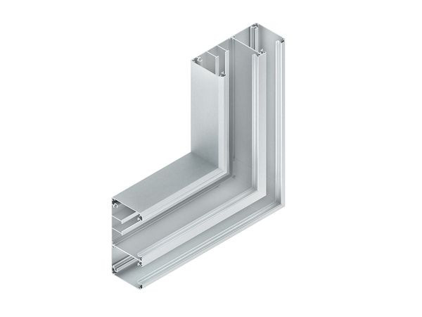 Doppelzügiges Gerätekanal-Vertikaleck 90°, mit zwei mittels Trennprofil getrennten, unterschiedlich großen Leitungszügen, der Potentialausgleich erfolgt über die Potentialausgleichsbrücke GPB 63-2, bitte gesondert bestellen. VDE zertifiziert! Abmessungen (ca. Maße) H x T : 170 x 80 mm Schenkellänge innen : 200 mm Deckelöffnungen : 78 mm + 38 mm (asymmetrisch) Abgang nach oben Teilung der Leitungszüge : 105 mm + 65 mm Oberfläche : naturanodisiert Werkstoff : Aluminium