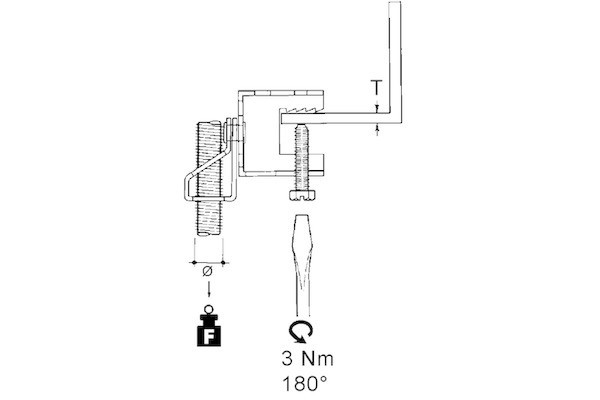 E-Klips, Schraubklemme mit Winkelabhänger, zum Anschrauben an verschiedenste Trägerflansche, für Gewindestababhängung. Abmessungen (ca. Maße) für Flanschstärke T : 1 - 18 mm Klemmauflage D : 19,5 mm für Anschlussgewindestab : M 6 Tragfähigkeit F : 0,45 kN Werkstoff : Stahl, mechanisch verzinkt/passiviert nach DIN EN ISO 9227