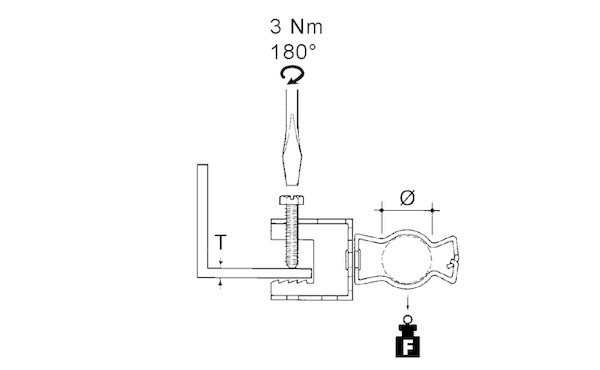 E-Klips, Schraubklemme mit einteiligem Rohrclip, zum Anschrauben an verschiedenste Trägerflansche, Rohrclip an Schraubklemme drehbar, für Rohrbefestigung. Abmessungen (ca. Maße) für Flanschstärke T : 1 - 18 mm Klemmauflage D : 19,5 mm für Rohr-Ø : 19 - 26 mm Tragfähigkeit F : 0,12 kN Werkstoff : Stahl, mechanisch verzinkt/passiviert nach DIN EN ISO 9227