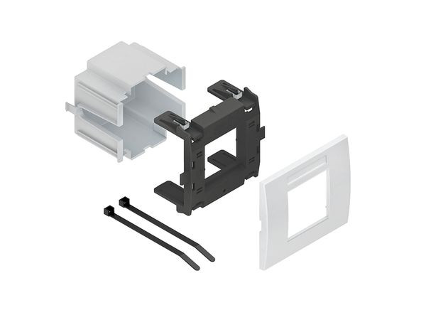 | Kurzbeschreibung | Geräteeinbausystem, Leerdose, einfach, Einbaubreite 93,5 mm, Abdeckung, RAL 9010, reinweiß |