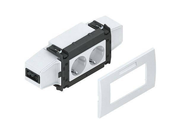 | Kurzbeschreibung | Geräteeinbausystem,vorkonf.,zweifach,Einbaubreite 138,5 mm,NV=250V/16A, Einsatz RAL 9016, Abdeckung RAL 9016, verkehrsweiß, f. Wieland-Stecker |