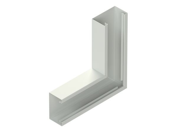 Vertikaleck 90°, einzügig symmetrisch, ohne Bodenlaschen für die Aufnahme der Trennstege jedoch mit rückwärtiger Befestigungslochung in beiden Schenkel, Sichtflächen in RAL Farbton gemäß Herstellerkatalog elektrostatisch pulverbeschichtet, für den Potentialausgleich zwei Stoßstellenverbinder GSVA... je Stoßstelle, bitte gesondert bestellen. VDE zertifiziert! Verwendung für : Gerätekanal GKU 133-78T70 VW Abmessungen (ca. Maße) Höhe H x Tiefe T : 133 x 70 mm Deckelöffnung : 78 mm Schenkellänge innen : 200 mm einreihige horizontale Rückenlochung : 7 x 33 mm mittiger Lochabstand : 62,5 mm eine vertikale Rückenlochung : 7 x 33 mm Farbton : verkehrsweiß RAL : 9016 (ähnlich) Werkstoff : Stahl, bandverzinkt nach DIN EN 10346