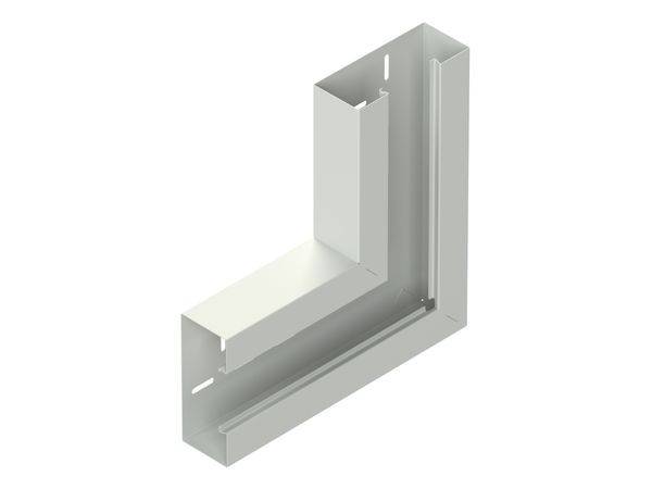 Vertikaleck 90°, einzügig symmetrisch, ohne Bodenlaschen für die Aufnahme der Trennstege jedoch mit rückwärtiger Befestigungslochung in beiden Schenkel, Sichtflächen in RAL Farbton gemäß Herstellerkatalog elektrostatisch pulverbeschichtet, für den Potentialausgleich zwei Stoßstellenverbinder GSVA... je Stoßstelle, bitte gesondert bestellen. VDE zertifiziert! Verwendung für : Gerätekanal GKU 170-78T70 VW Abmessungen (ca. Maße) Höhe H x Tiefe T : 170 x 70 mm Deckelöffnung : 78 mm Schenkellänge innen : 200 mm einreihige horizontale Rückenlochung : 7 x 33 mm mittiger Lochabstand : 62,5 mm eine vertikale Rückenlochung : 7 x 33 mm Farbton : verkehrsweiß RAL : 9016 (ähnlich) Werkstoff : Stahl, bandverzinkt nach DIN EN 10346