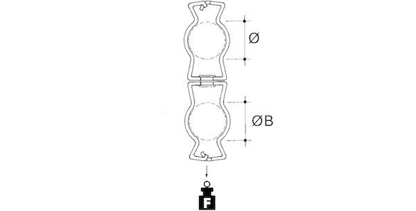 E-Klips, Doppelrohrclip, zur Befestigung von Rohren an Rohre, Rohrclips drehbar. Abmessungen (ca. Maße) für Rohr-Ø : 19 - 26 mm für zweiten Rohr-Ø B : 32 - 40 mm Tragfähigkeit F : 0,45 kN Werkstoff : Stahl, mechanisch verzinkt/passiviert nach DIN EN ISO 9227