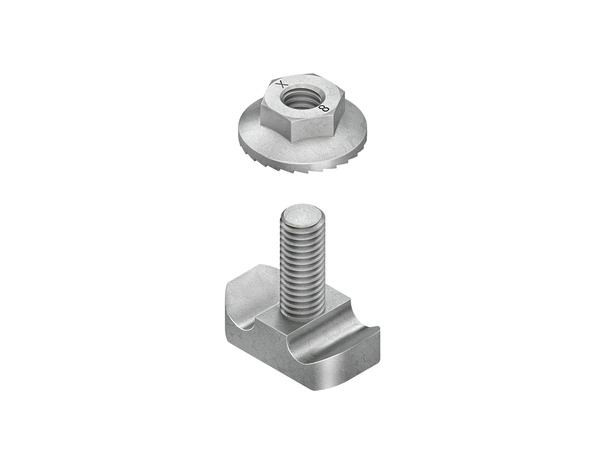 | Kurzbeschreibung | Gitterrinnen-Universalverbinder, zweiteilig, mit großer Flanschmutter, Stahl, galvanisch verzinkt DIN EN ISO 4042, blaupassiviert |