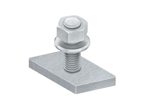 Hammerkopfschraube mit Sechskantmutter und Unterlegscheibe, an jeder Stelle im Profil einsetzbar. Verwendung für : Reihenschiene 2913 und Ankerschiene 2914 mit 11 mm Schlitzweite und Ankerschienen 2916 und 2917 mit 12 mm Schlitzweite Abmessungen (ca. Maße) Kopflänge : 27 mm Kopfbreite : 13 mm Kopfhöhe : 4 mm Gewinde : M 6 Länge L : 20 mm Festigkeitsklasse : 4.6 Werkstoff : Stahl, galvanisch verzinkt nach DIN EN ISO 4042, blaupassiviert