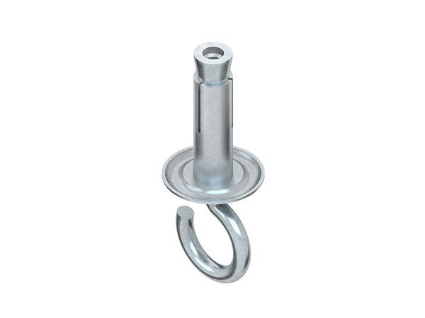 Deckenhaken, mit NIEDAX Stahldübel mit eingedrückter Konusmutter, der Konus des Stahldübels ist unverlierbar mit Verdrehungsschutz. Der Dübel ist nicht bauaufsichtlich geprüft und somit nur für untergeordnete Befestigungen einzusetzen. Abmessungen (ca. Maße) Dübellänge L : 40 mm Bohrnenn-Ø : 10 mm Haken-Ø innen : 16 mm Hakenschraube : M 5X42 Werkstoff Haken : Stahl, galvanisch verzinkt nach DIN ISO 4042, blaupassiviert Werkstoff Hülse mit Konusmutter : Stahl, bandverzinkt nach DIN EN 10346