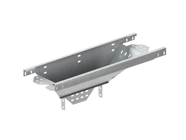 Abgangstrichter, längs, zweiteilig, mit ungelochten Seitenholmen, mit Verbinderlochungen für den Anschluss, mit integrierten Stoßstellenverbindern, für den senkrechten Abzweig längs zur Hauptrichtung, einschließlich anteilmäßigen Befestigungszubehör. Der Grundköper des Abgangstrichters wird auf die gerollten Längskanten der bereits vormontierten Kabelrinnen eingehangen und mit diesen verschraubt. Nach Einlegen der Kabel wird das Vorderteil an dem Grundkörper befestigt und mit den Kabelrinnen verschraubt. Vorteil des Trichters - Fädelaufwand der Kabel entfällt. Ausführung : Durchlaufende Rinnengröße = abgehende Rinnengröße Verwendung für : Kabelrinnen mit 35 mm Kantenhöhe Lieferung : unmontiert Abmessungen (ca. Maße) H x B (innen) : 35 x 152 mm Einsatzmaß A für die durchlaufende Rinne : 410 mm Werkstoff : Stahl, bandverzinkt nach DIN EN 10346