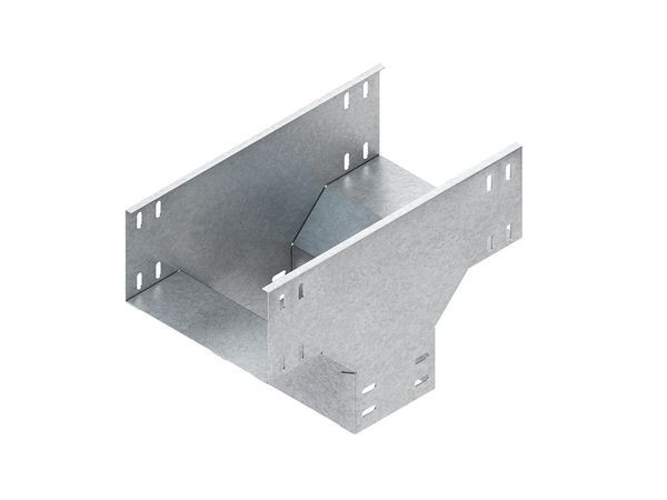 Abgangstrichter, quer, mit ungelochten Seitenholmen, mit Verbinderlochungen für den Anschluss, für Kabelrinnen, für den senkrechten Abzweig quer (rechtwinklig) zur Hauptrichtung, einschließlich anteilmäßigen Befestigungszubehör. Ausführung: Durchlaufende Rinnengröße = abgehende Rinnengröße Verwendung für : Kabelrinnen mit 110 mm Kantenhöhe Abmessungen (ca. Maße) innen H x B : 100 x 102 mm Einsatzmaß A für die durchlaufende Rinne : 361 mm Werkstoff : Stahl, bandverzinkt nach DIN EN 10346