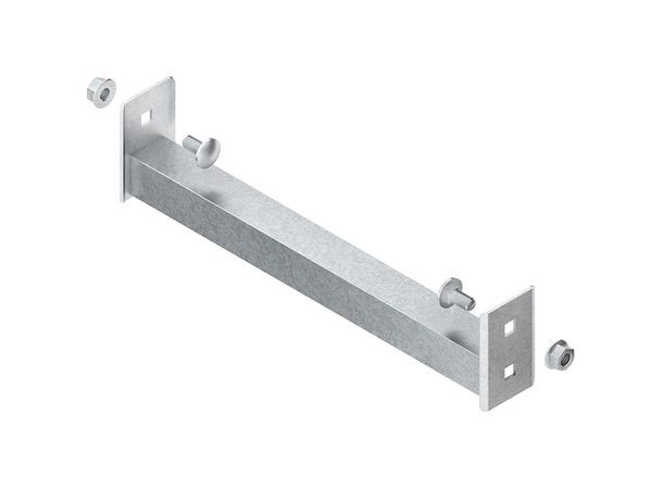 Sprosse, bestehend aus Winkeleisen nach DIN EN 10056, mit kopfseitig angeschweißten Anschlusslaschen, einschließlich feuerverzinkten anteilmäßigem Befestigungszubehör. Für den zusätzlichen Bedarf. Passende Bügelschellen (BW... und BWK...). für Steigetrasse : STIW 40... Abmessungen (ca. Maße) Winkeleisen : 40 x 40 x 4 mm Breite B : 1134 mm Tragfähigkeit bei B/2 : 0,75 kN Werkstoff : Stahl, tauchfeuerverzinkt nach DIN EN ISO 1461