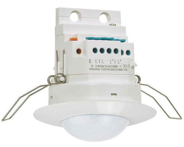 Decken Einbau Version 360° mit bis zu ø 16 m Erfassungsbereich, mit Federklemmen Befestigung für abgehängte Decken. Präsenzmelder mit flachem und modernem Design für abgehängte Decken. Montage über Federklemmen. Externer Schalter (ON). Farbausführung: weiß