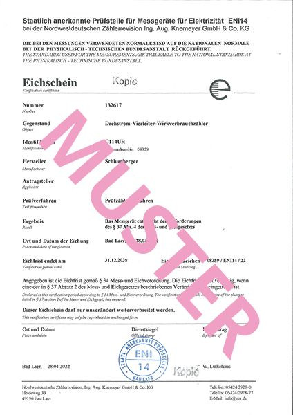 | Kurzbeschreibung | Eichschein für elektronische Zähler |