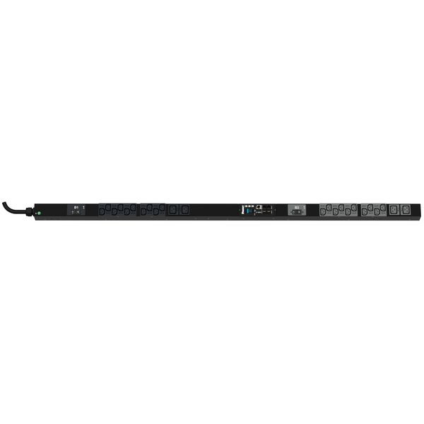 Die SmartZone™ G5 PDU mit überwachtem Eingang verfügt über (20) C13- und (4) C19-Steckdosen. Dabei handelt es sich um eine Einphasen-PDU 32 A, 230 V mit einem IEC 60309 2P+E 6h 32A (IP44) Eingangsstecker und einem 10 Fuß (3 m) langen Stromkabel. Die PDU ist schwarz.