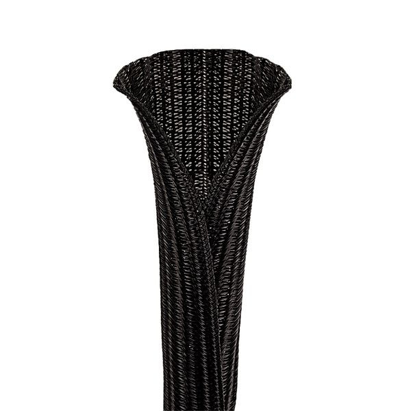 Umflochtene erweiterbare Muffe, Durchmesser 1,25“ (31,8 mm), schützt Drähte, Kabel und Rohre dauerhaft vor Abnutzung. Das hoch flexible offene Gewebe bindet weder Hitze noch Feuchtigkeit, schwarz, Polyethylenterephthalat, 75‘ je Rolle.