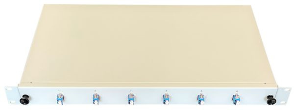 19" Spleissbox Singlemode mit Frontblende und montierten Kupplungen mit Keramikhülsen, ausziehbar