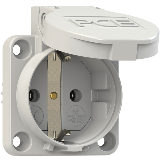 | Kurzbeschreibung | Schutzkontakt-Anbausteckdose 50x50 nat Dichtrand IP54 schraublos (grau) |