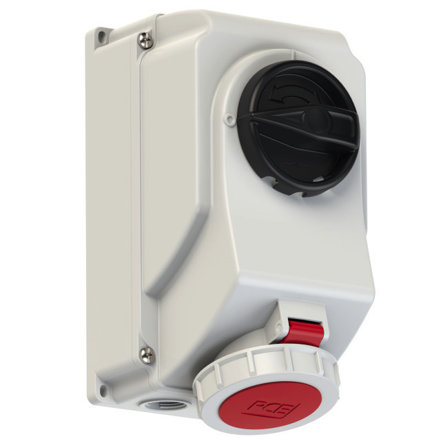 CEE-Steckdose abschaltbar 16A 5p 6h IP66/IP67; Gehäusematerial: PC/ABS; Nennstrom: 16A; Polzahl: 5 (3P+N+PE); Uhrzeit-Stellung: 6h; Nennspannung/Frequenz: 200/346V~ - 240/415V~ / 50+60Hz; Kontakte: Messing vernickelt; Anschlusstechnik: Schraubklemmen; Abschaltbare Wanddose, mechanisch verriegelt; Schalter: EIN/AUS PCE-Merz ML0; EN 60947-3; AC22A, 10kA; Leitungseinführung von oben, unten oder hinten (inkl. Blindverschraubung); Schutzart: IP66/IP67