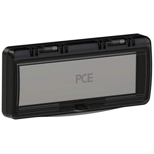 Klappfenster 11TE IP44/IP54 (schwarz); Material (Scheibe/Rahmen): Polycarbonat/PC-ABS; Abmessungen (BxHxT): 218x97x27mm; Schutzart: IP44 (horizontal), IP54 (vertikal)