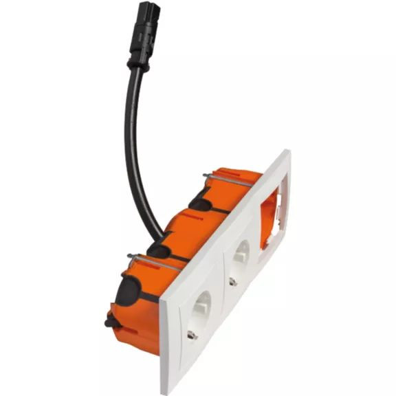 | Kurzbeschreibung | Badora 2-fach SCHUKO Steckdose, Schraubklemmen, 2-polig, erhöhter Berührungsschutz, Leersteckplatz zur individuellen Nutzung, 3-poliger Rahmen, reinwe |
