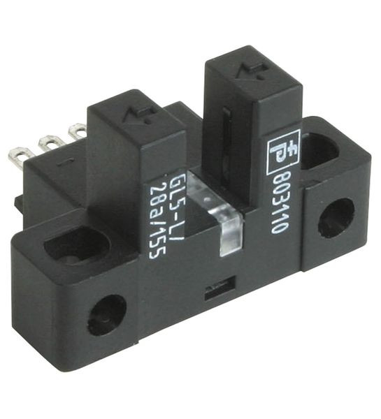 Miniatur-Gabellichtschranke für Kleinteileerkennung, L-Bauform, Gabelweite 5 mm, Infrarotlicht, PNP-Ausgänge, Flachstecker, Miniatur-Bauform, Optimiert für Kleinteileerkennung, Hohe Schaltfrequenz, Einfache und schnelle Montage, Gut sichtbare Funktionsanzeige