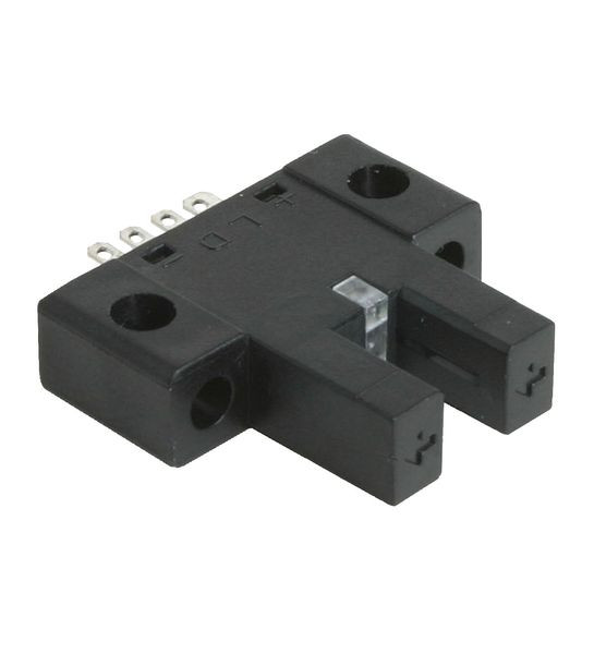 Miniatur-Gabellichtschranke für Kleinteileerkennung, U-Bauform, Gabelweite 5 mm, Infrarotlicht, PNP-Ausgänge, Flachstecker, Miniatur-Bauform, Optimiert für Kleinteileerkennung, Hohe Schaltfrequenz, Einfache und schnelle Montage, Gut sichtbare Funktionsanzeige