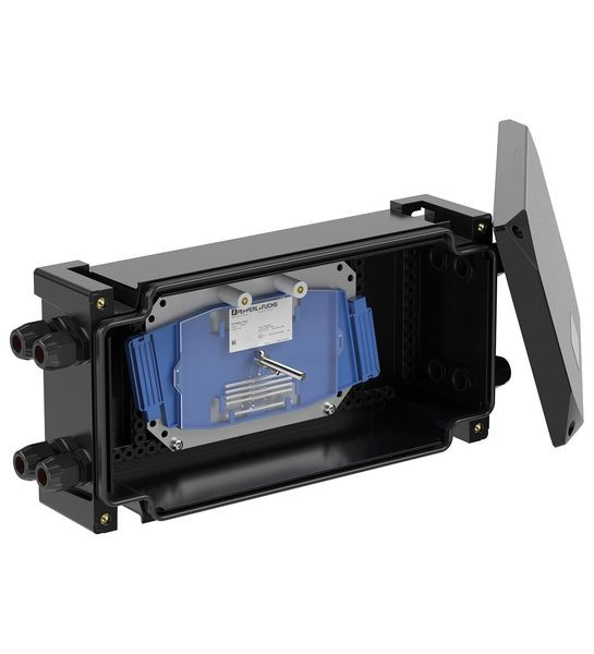 Bis zu 8 Lichtwellenleiter-Spleißkassetten, 12 Schmelzspleiße je Kassette, Große Auswahl an Kabelverschraubungen und Blindverschraubungen, Sicherer Schutz von Lichtwellenleiter-Spleißverbindungen in explosionsgefährdeten Bereichen, Montage in Zone 1, Zone 2, Zone 21 und Zone 22, Ex-op-pr- und Ex-tb-zertifiziert, Kohlenstoffangereicherter antistatischer glasfaserverstärkter Polyester, 179 mm x 359 mm x 104 mm, Modernes Design mit hoher Schlagfestigkeit