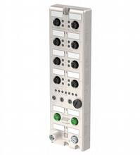 Protokoll: Profinet IO mit Media Redundancy Protocol (MRP) EtherNET/IP mit Device-Level-Ring (DLR) EtherCAT, Anzahl/Typ: 8 Digitaleingänge (X1 - X4), 8 Digitalausgänge (X5 - X8) Eingänge: 2-, 3-, 4-Draht PNP, DC, Versorgung aus US Ausgänge: 2-, 3-, 4-Draht, PNP, DC, Versorgung aus UL kurzschlussfest
