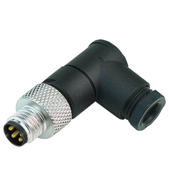 Kabelstecker M8 gewinkelt A-kodiert 3-polig, für Kabeldurchmesser 3,5 - 5 mm, konfektionierbar, Lötverbindung