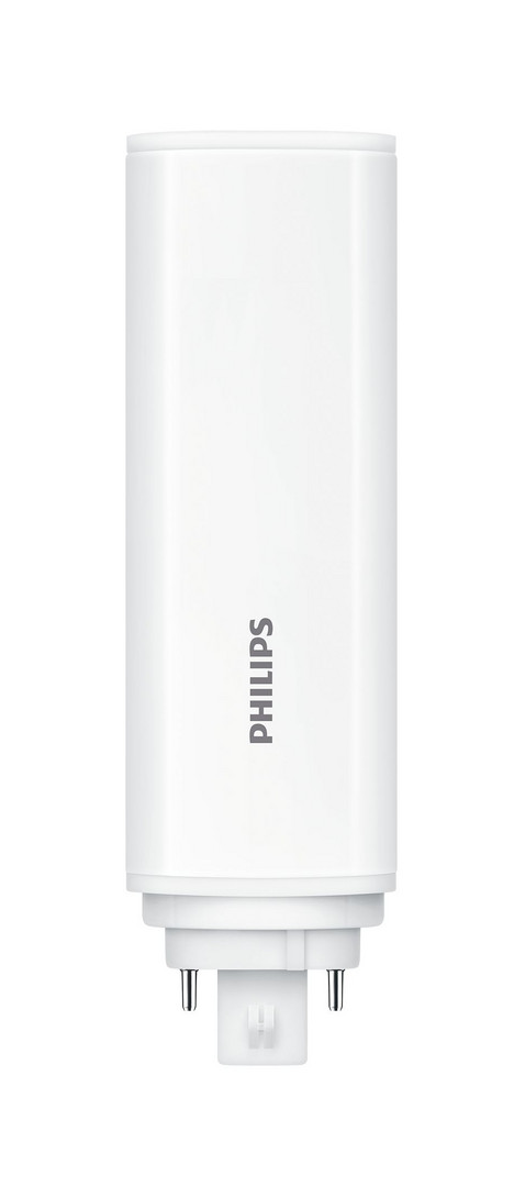 LED Kompaktlampe Philips CorePro PLT 4P, LED Alternative für Kompaktleuchtstofflampe Philips PL-T 26W und OSRAM DULUX T/E 26W, Anschluss an EVG/230V, 1100lm, Farbtemperatur 4000K, Leistung 9W, Farbwiedergabeindex CRI82, mittlere Nutzlebensdauer 30000h, Energieeffizienzklasse E, Sockel GX24Q-3 rotierbar, 120° Ausstrahlwinkel, Material Kunststoff, nicht dimmbar, photobiologische Sicherheit nach EN 62471 RG1, SDCM<6, Leistungsfaktor 0.9, Schutzart IP20