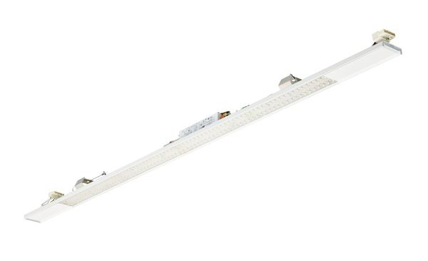 L1517 mm, Stahl, Weiß, Signalweiß (RAL9003), Dreifache Spritzlackierung, Netzteil (Ein/Aus), 5700 lm, 36 W, 168 lm/W, 4000 K, (0.34. 0.35) SDCM 3, Breitstrahlend (WB), Texturiert, Polykarbonat, ?IP20 | Fernhalten von Fingern, IK02 | 0,2 J Standard, SchutzklasseI, 7-poliger Anschlussblock, Durchgangsverdrahtung, 3-phasig